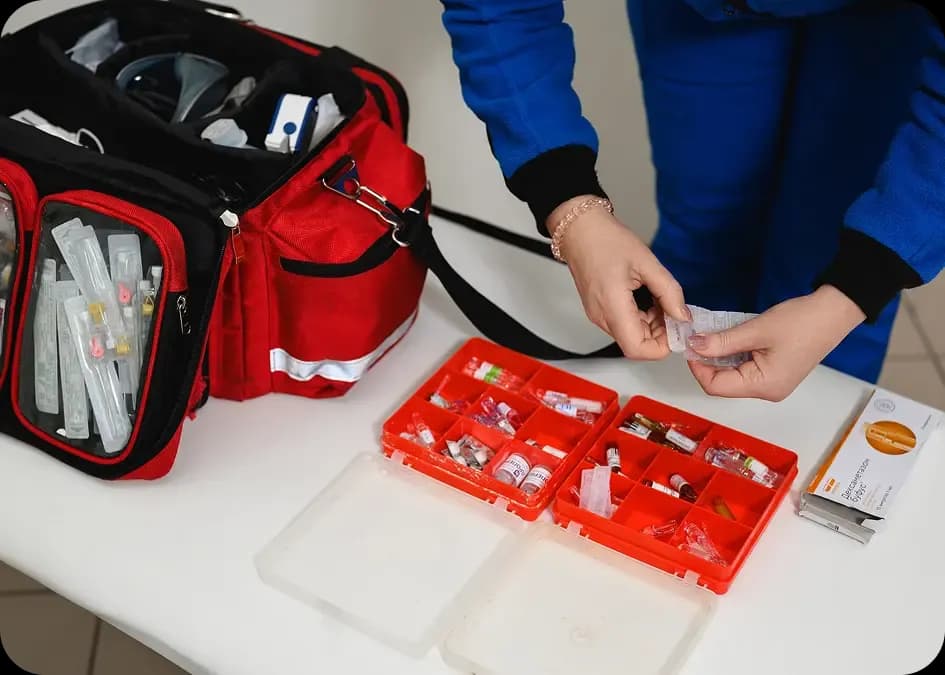 Врач приезжает со всеми необходимыми препаратами и оборудованием.